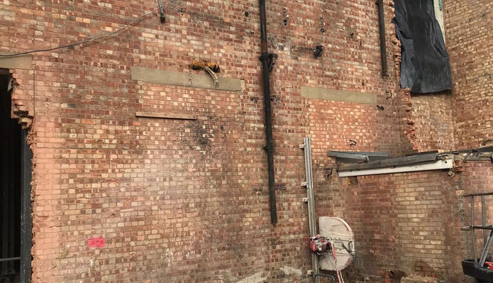 As a result of initial surveys we undertook back propping and structural support works enabling access and further works. We were then tasked with the full structural remediation of the salvageable parts of the listed building and the construction of new internal and external structural elements. The building was adjoined to a funeral directors and morgue, which also required significant temporary works to prevent structural collapse.